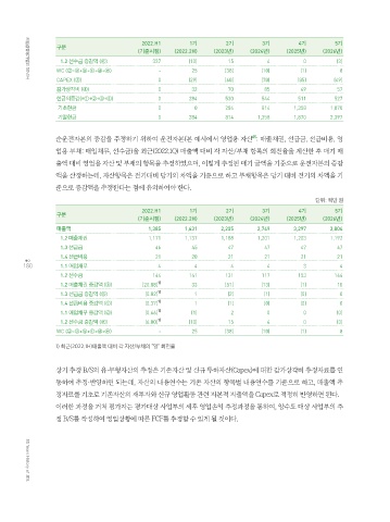 출액 대비 영업용 자산 및 부채의 항목을 추정하였으며, 이렇게 추정된 매기 금액을 기준으로 운전자본의 증감