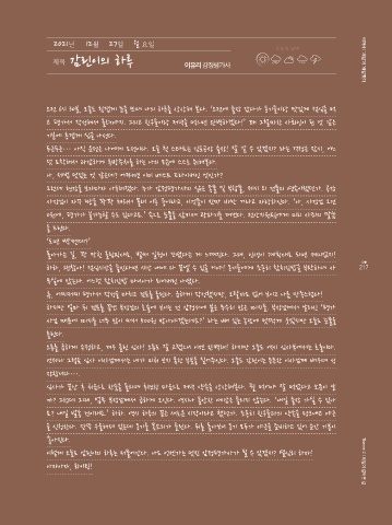 까? 그런데 그때, 업무 부장님께서 급하게 오신다. 역시나 불안한 예감은 틀리지 않는다. ‘내일 출장 가실 수 있나