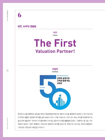 장식적 요소를 배제하고 50년을 이어온 제일감정평가법인의 역할과 위상을 명징하게 표현한다. 숫자 5와 0의