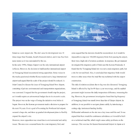 in Korea. However, the decision to build another international airport found that the Yeongjong Island site was not a main migratory path, but