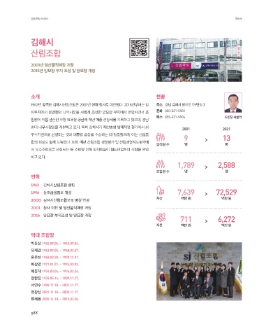 1962년 발족한 김해시산림조합은 2001년 현재 청사로 이전했다. 2016년부터는 임 주소 경남 김해시 함박로 119번길 3
