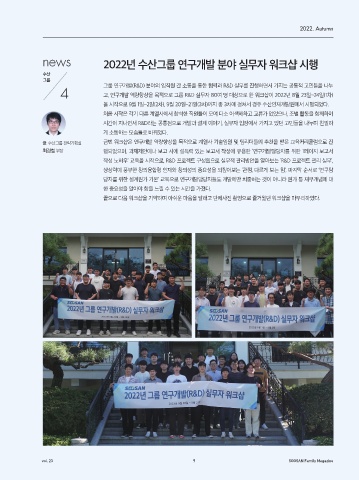 4 고, 연구개발 역량향상을 목적으로 그룹 R&D 실무자 80여 명 대상으로 한 워크샵이 2022년 8월 23일~24일(1차)