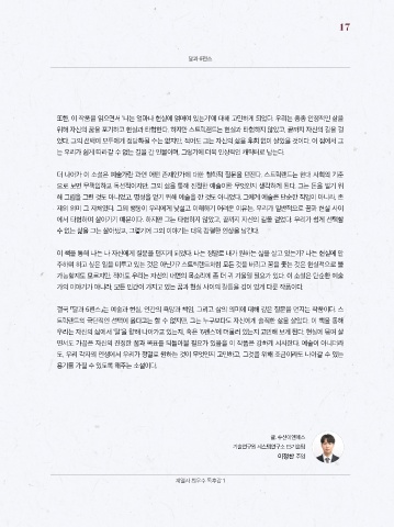 에서 타협하며 살아가기 때문이다. 하지만 그는 타협하지 않았고, 끝까지 자신의 길을 걸었다. 우리가 쉽게 선택할