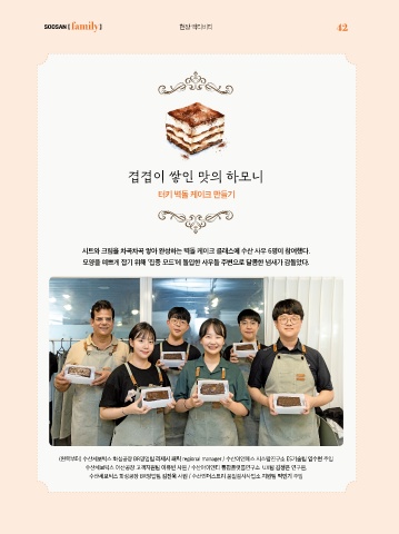 시트와 크림을 차곡차곡 쌓아 완성하는 벽돌 케이크 클래스에 수산 사우 6명이 참여했다.