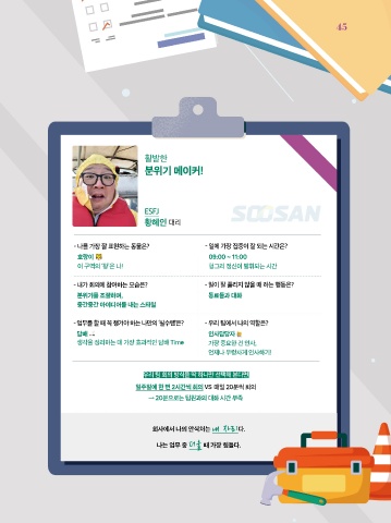 - 업무를 할 때 꼭 챙겨야 하는 나만의 ‘필수템’은? - 우리 팀에서 나의 역할은?