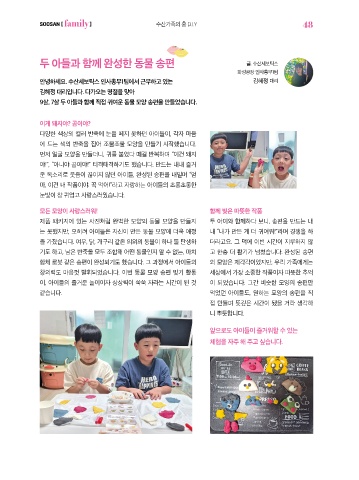 두 아들과 함께 완성한 동물 송편 글. 수산세보틱스