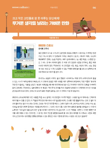 않게 그려낸다. 무엇보다도 일본 문화의 한 특징인 ‘하이쿠’의 잔여물 역시 작품에 녹여내면서 만화책에 주어진 서사를