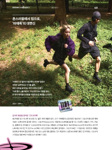 석되며 트렌디하게 돌아온 것이다. ‘고프코어(Gorpcore)’는 캠핑이나 트래킹을 할 때 먹는 견과류(그래놀라, 귀리, 건포