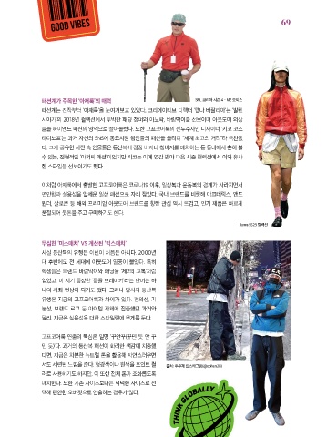 민 듯)’다. 과거의 등산복 패션이 화려한 색감에 치중했