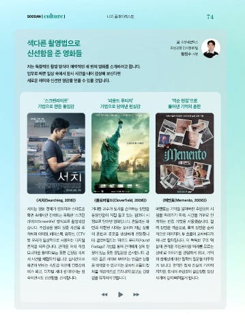 《서치(Searching, 2018)》 《클로버필드(Cloverfield, 2008)》 《메멘토(Memento, 2000)》