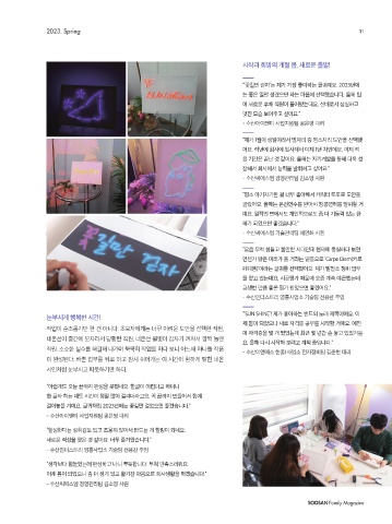 이 완성된다. 바쁜 업무를 뒤로 하고 잠시 쉬어가는 이 시간이 환하게 밝힌 네온